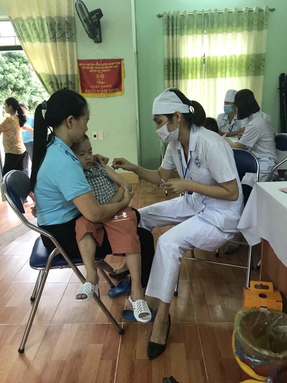 Sáng ngày 22/09/2020 Tại văn phòng Trường Mầm non Thanh Trường y tế của nhà trường phối hợp cùng Trung tâm y tế Phường Thanh Trường tổ chức Tiêm bổ sung vắc xin Bại liệt (IPV) cho các cháu lớp Mẫu giáo Bé 3 - 4 tuổi và Mẫu giáo Nhỡ 4 - 5 tuổi cho trẻ sinh từ ngày 01/03/2016 đến ngày 28/02/2018 tại nhà trường.