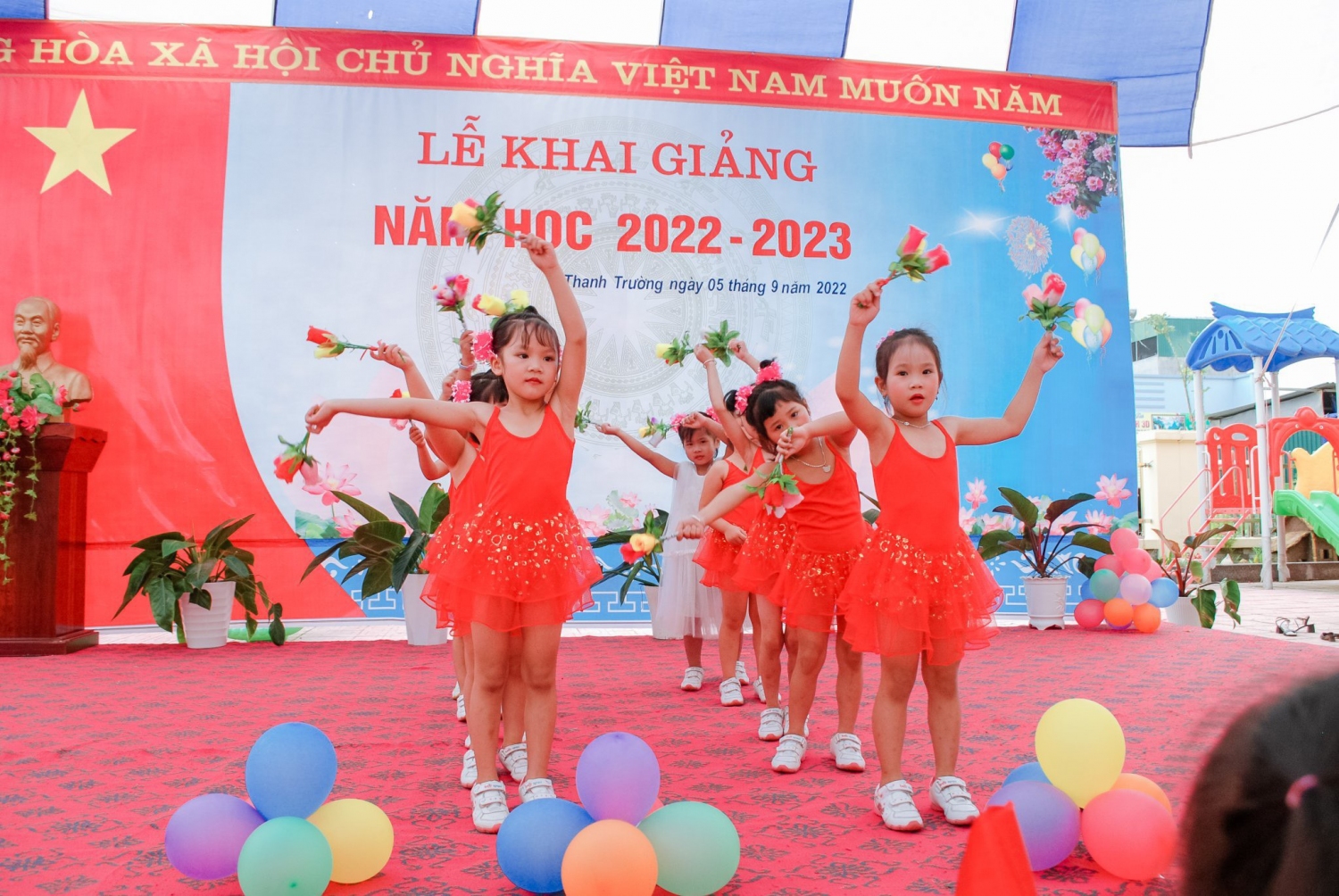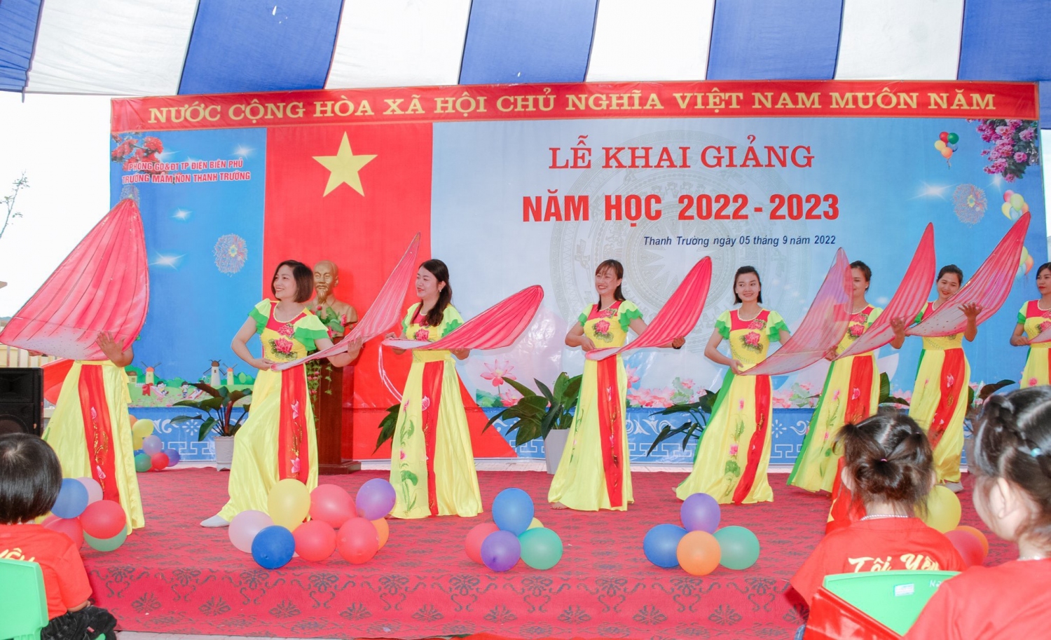Hòa chung trong không khí tưng bừng phấn khởi của cả nước, kỉ niệm 77 năm ngày cách mạng tháng Tám và Quốc khánh Mùng 2 tháng 9, chào mừng ngày hội toàn dân đưa trẻ đến trường. Sáng ngày 05/9/2022 trường Mầm non Thanh Trường tổ chức “Lễ khai giảng năm học 2022 - 2023