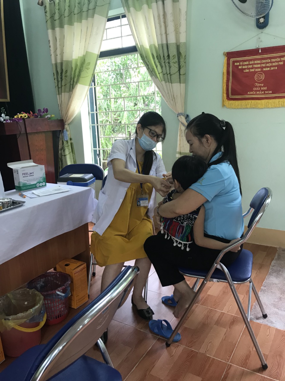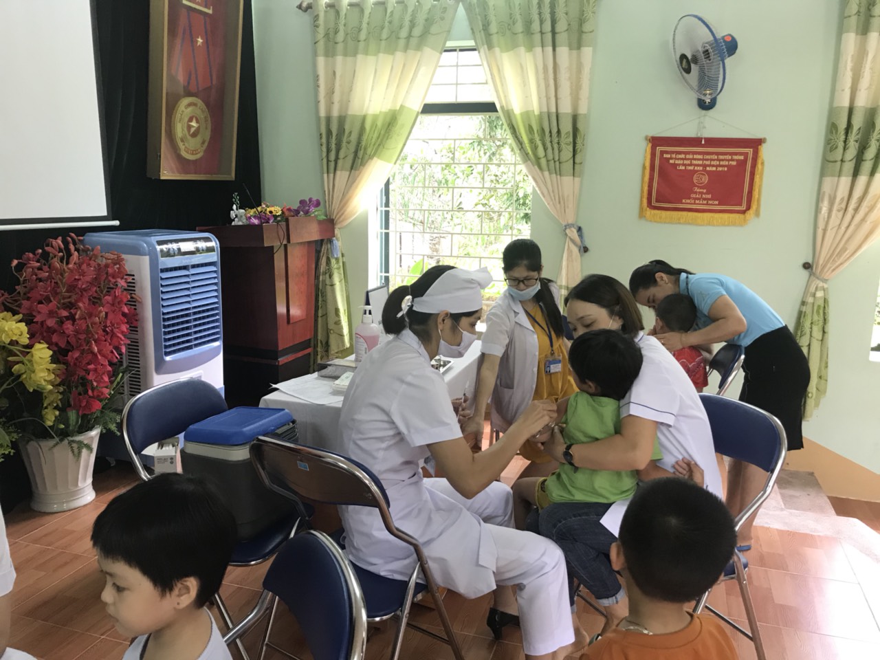 Sáng ngày 22/09/2020 Tại văn phòng Trường Mầm non Thanh Trường y tế của nhà trường phối hợp cùng Trung tâm y tế Phường Thanh Trường tổ chức Tiêm bổ sung vắc xin Bại liệt (IPV) cho các cháu lớp Mẫu giáo Bé 3 - 4 tuổi và Mẫu giáo Nhỡ 4 - 5 tuổi cho trẻ sinh từ ngày 01/03/2016 đến ngày 28/02/2018 tại nhà trường.