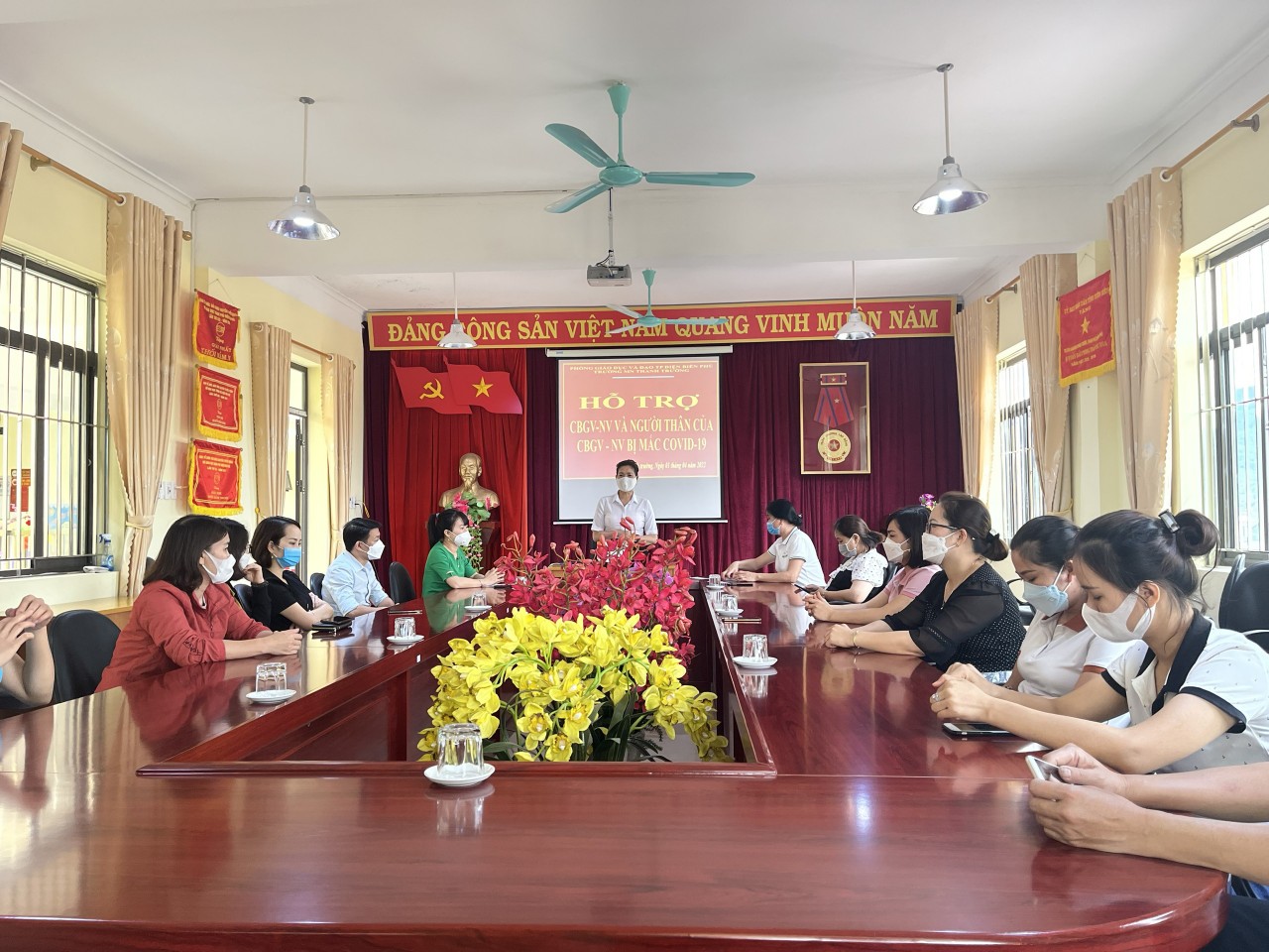 Thực hiện quyết định số 41/QĐ-TMNTTr ngày 14 tháng 03 năm 2022 V/v thành lập quỹ hỗ trợ cán bộ giáo viên, nhân viên và người thân của CBGV - NV Trường mầm non Thanh Trường bị mắc Covid - 19.