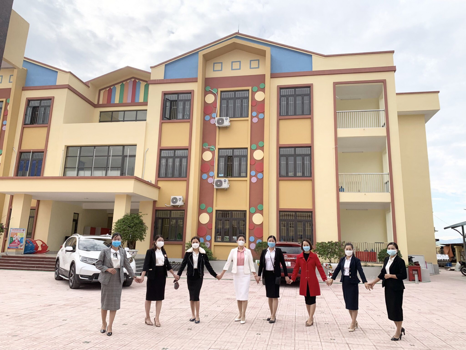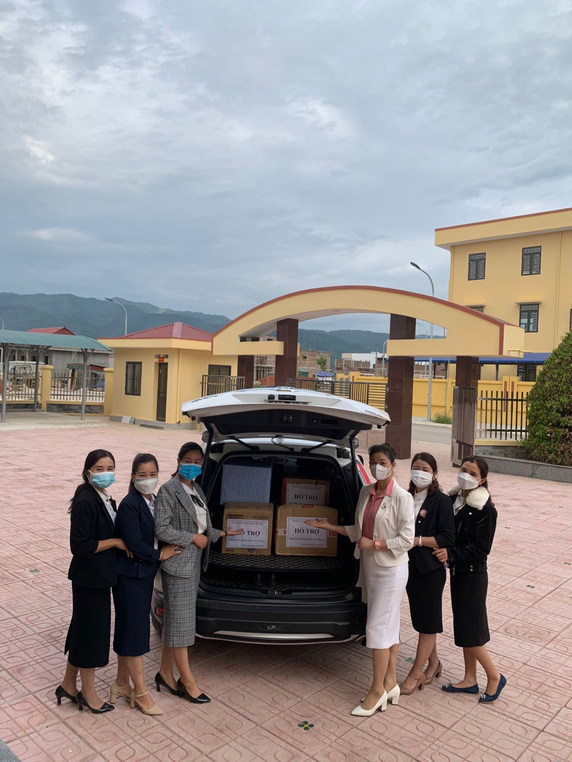Trước diễn biến phức tạp của dịch bệnh Covid 19, trong quá trình trao quà công tác phòng, chống dịch Covid 19 luôn được đảm bảo một cách tốt nhất, các cô giáo đều được đo thân nhiệt, sát khuẩn, đeo khẩu trang đảm bảo an toàn.