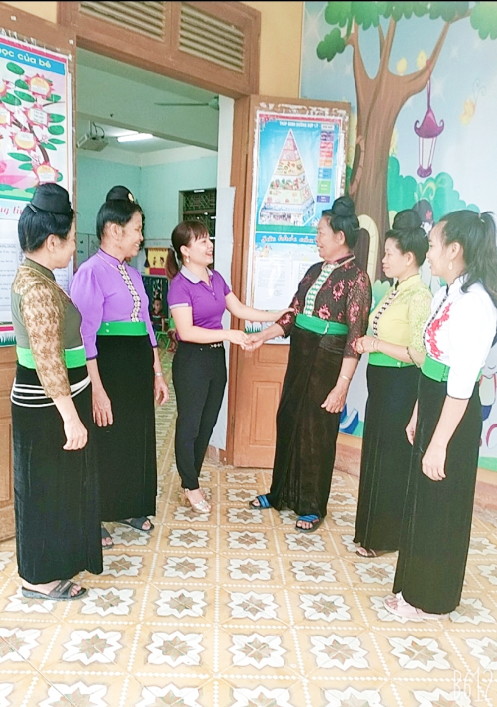 Nhà trường thực hiện đa dạng hóa các hình thức tuyên truyền như qua góc tuyên truyền ở các nhóm/lớp, bảng tin, pa nô, áp phích; thông qua các cuộc họp phụ huynh, họp tổ dân phố, bản; phối hợp với trung tâm học tập cộng đồng của phường để tuyên truyền nội dung của Đề án tới nhân dân trên địa bàn. Chỉ đạo các lớp tích cực xây dựng môi trường tiếng Việt và tổ chức hiệu quả các hoạt động tăng cường tiếng Việt phù hợp với độ tuổi từ việc lựa chọn nội dung, xây dựng kế hoạch đến vận dụng phương pháp, hình thức tổ chức các hoạt động tăng cường tiếng Việt theo hình thức lồng ghép trong chế độ sinh hoạt hằng ngày của trẻ ở trường, đảm bảo cho trẻ học tiếng Việt qua chơi, trải nghiệm dưới nhiều hình thức, phát huy tính tích cực, chủ động của trẻ trong việc học tiếng Việt. Đánh giá việc tổ chức các hoạt động giáo dục lấy trẻ làm trung tâm theo từng độ tuổi đảm bảo đúng nội dung, phù hợp với khả năng, nhu cầu của trẻ và hoàn cảnh sống, truyền thống văn hóa của địa phương, dân tộc.