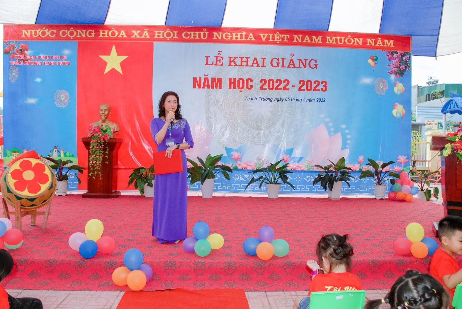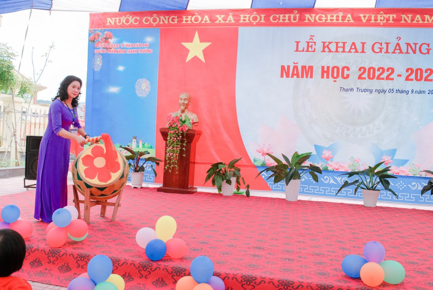 Hòa chung trong không khí tưng bừng phấn khởi của cả nước, kỉ niệm 77 năm ngày cách mạng tháng Tám và Quốc khánh Mùng 2 tháng 9, chào mừng ngày hội toàn dân đưa trẻ đến trường. Sáng ngày 05/9/2022 trường Mầm non Thanh Trường tổ chức “Lễ khai giảng năm học 2022 - 2023